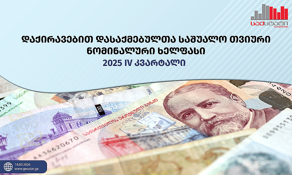დაქირავებით დასაქმებულთა საშუალო თვიური ნომინალური ხელფასი - (2025 წლის IV კვარტალი)